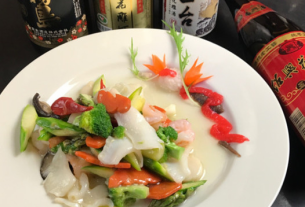 トッピング・高菜と豚肉とたけのこ100円・押し豆腐150円・豚本ロース200円本格上海葱油ソースかけ麺